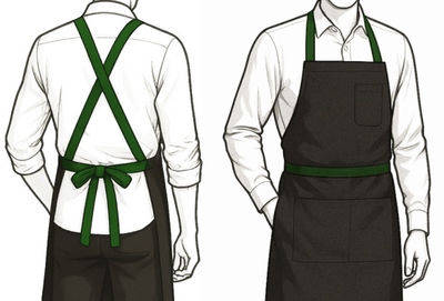 Custom Black Cotton Canvas Bib Apron w/ Bucks Green Cross-back Webbing