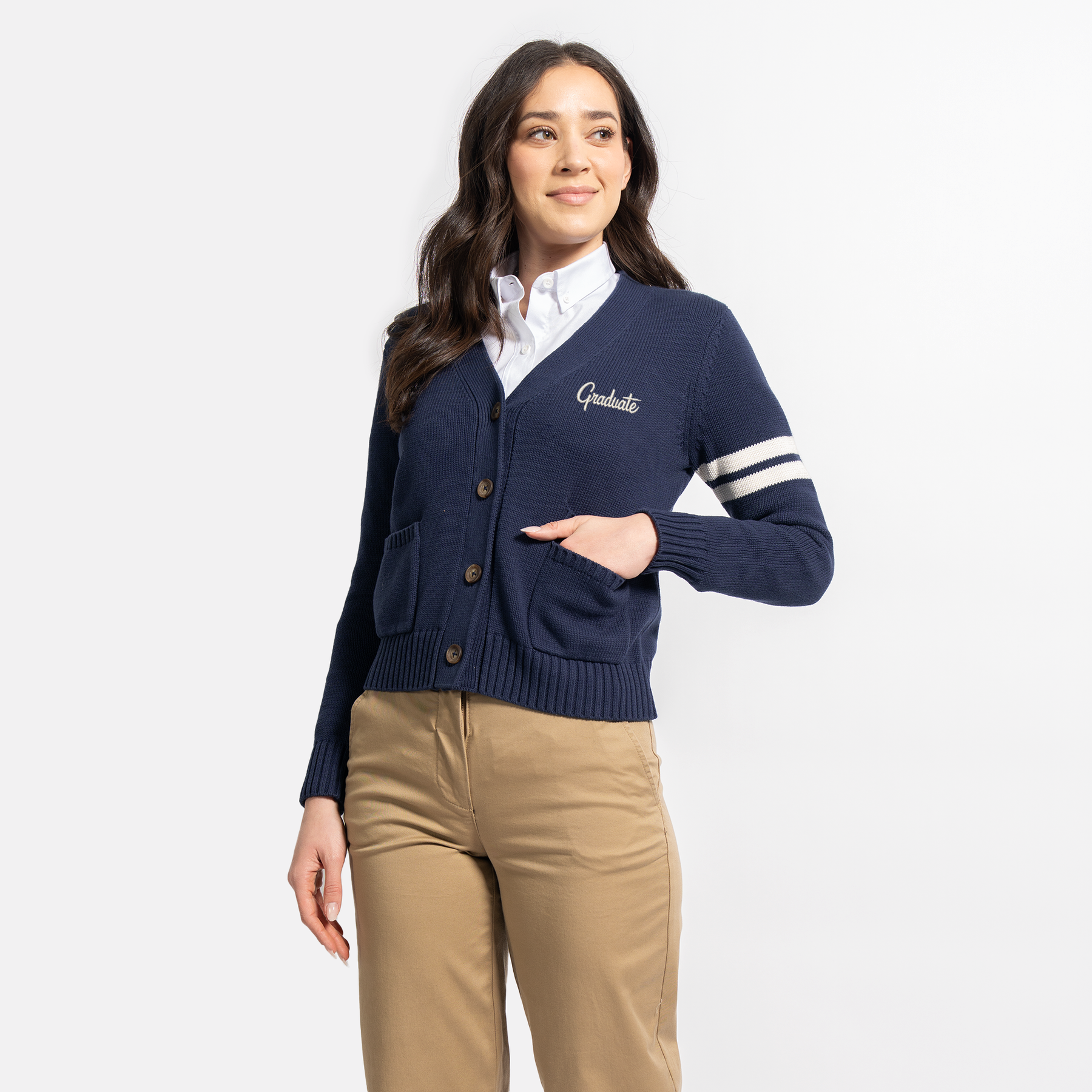 A fresh take on a campus classic, our Varsity Cardigan blends vintage letterman style with the polish needed for modern hospitality. Clean sleeve stripes add just the right amount of character, while the soft-but-sturdy knit holds its shape through long shifts and everyday wear. Layer it over a tee or button-down for an easy, elevated look — sharp enough for FOH, comfortable enough for life off the clock. A timeless essential with unmistakable collegiate charm.