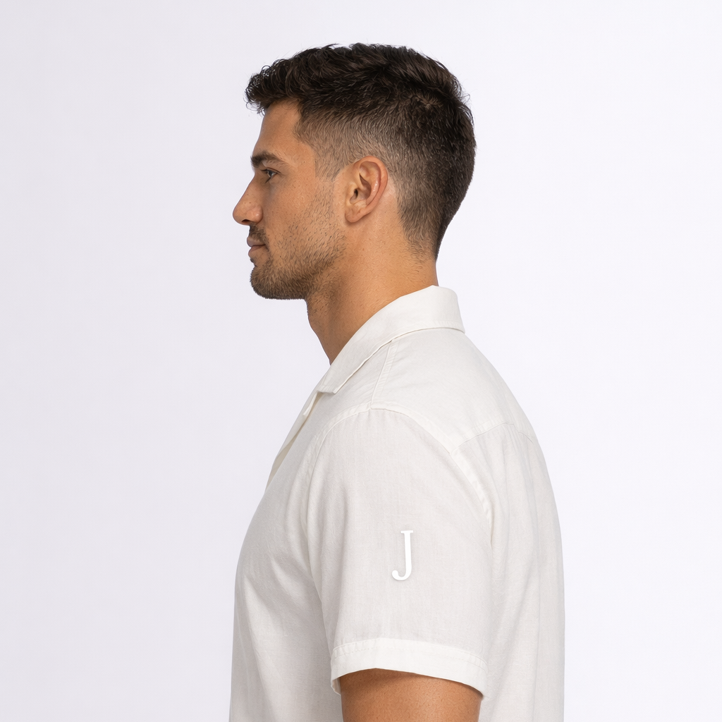 Men's Ivory Chambray Camp Shirt w/ Junction "J" Logo
