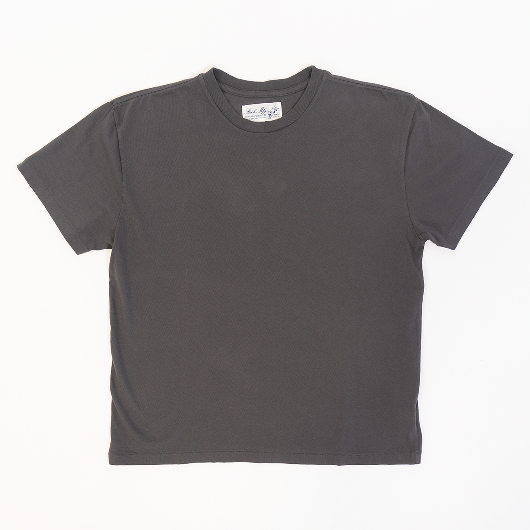 After a dozen years in business, we set out to make the best vintage wash cotton tee possible. Loomed, cut, sewn, dyed, and washed in Los Angeles, it looks and feels like that holy grail concert tee thrift find. Single-stitch construction, worn-in from day one, slightly relaxed fit, and featuring American-made labels woven on a vintage 1935 shuttle loom. This is our vintage-style blank that feels like it’s been in your rotation forever.