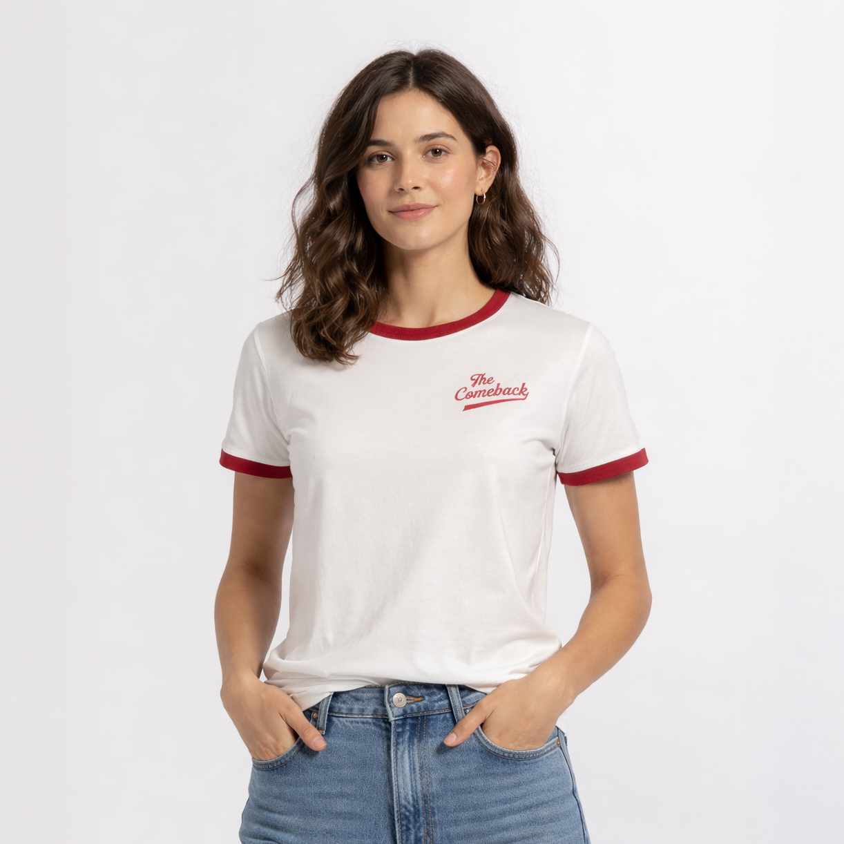 White and Cardinal Ringer Tee w/ The Comeback Logo